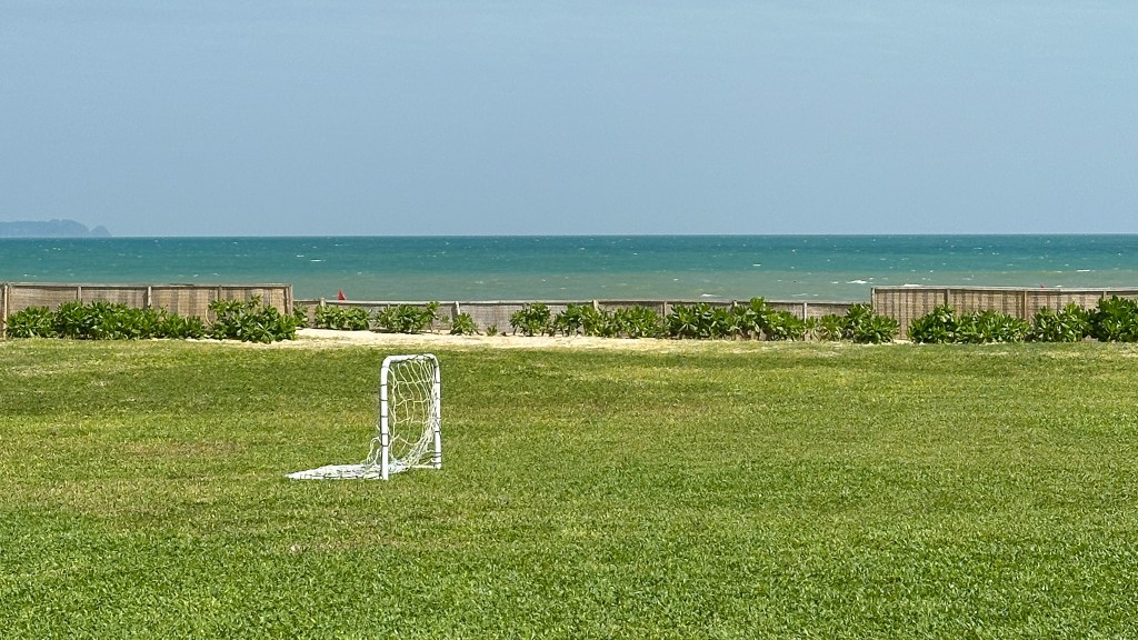 Beyond the pool lies a spacious lawn with sunbeds where you can relax while listening to the waves or enjoy food and drinks from Ana Beach House. Evening yoga classes seemed to be held here, but I arrived too late to participate. The lawn also featured a mini soccer goal, which families with children seemed to enjoy.